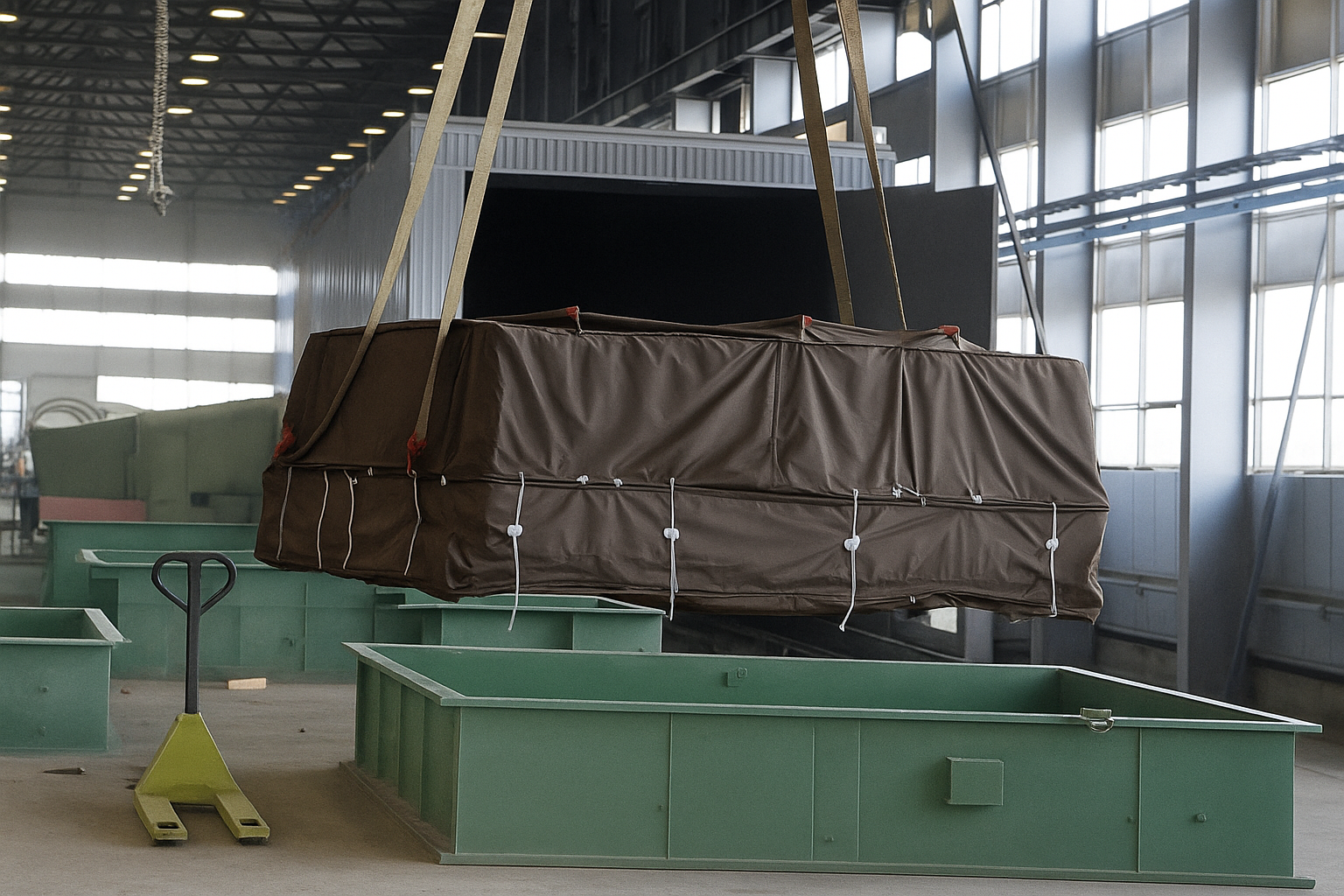 Материал: ткань «Оксфорд» 600D с ПВХ-покрытием Назначение: защита промышленного оборудования при транспортировке и хранении на объектах повышенной ответственности, включая атомные электростанции.